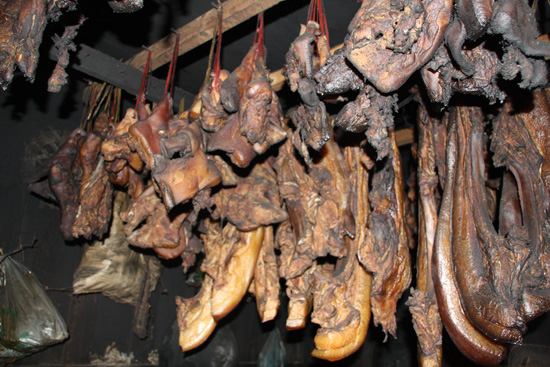 内容简介:本产品由本地土猪肉用柴火常年累月的薰制而成。 食用方法:用温水洗干净后,可切成片小炒,也可以蒸炖食用。